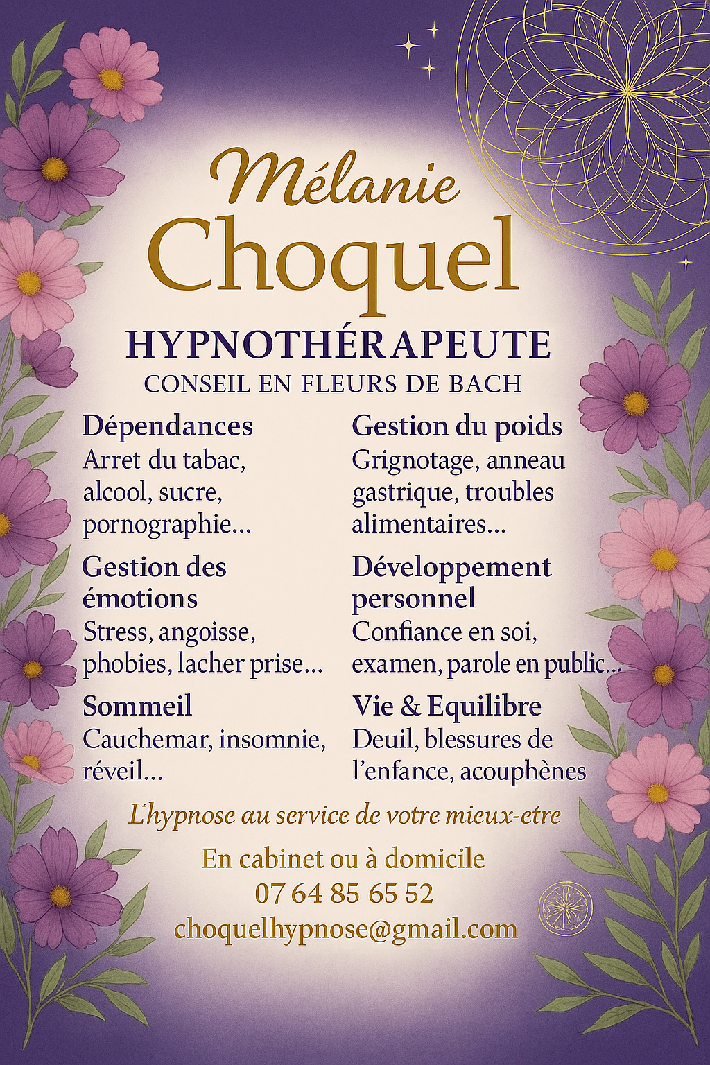 Mon propre parcours avec l'hypnothérapie a été le point de départ de ma vocation. L'expérience personnelle de la thérapie m'a révélé le pouvoir de cette approche et m'a inspiré à aider les autres. C'est avec bienveillance et compassion que j'offre un soutien concret et efficace face aux défis que vous rencontrez.