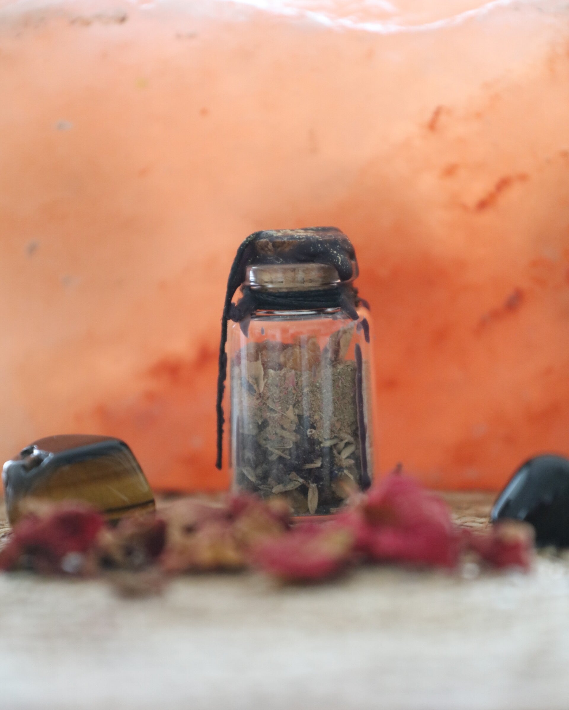 Découvrez notre Encens de Protection intentionné, soigneusement préparé dans une fiole en verre de 20 g.